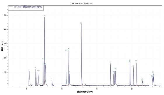16种PAHs标准化品SIM检测铝离子流色谱图