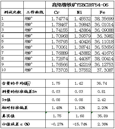 ③.红铁矿石—Cr的级任务曲线图与相干数据表格