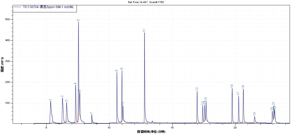 棉家用纺织品中23种偶氮有机染料的检验TIC图