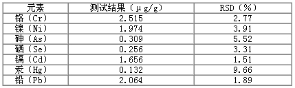 切确称取6份香烟产品的样品,约0.2g/份,离别时检验此中的As 、Cr 、Ni、Se 、Cd 、Hg 和Pb,并以检验技术科技成果算计其或然规定误差率(RSD)。技术科技成果显示屏,Cr 、Ni 、As 、Se 、Cd 、Hg和Pb的RSD离别时为2.77 %、3.91 %、5.52 %、3.31%、1.51 %、9.66 %和1.89 %。数据分析见表3。
