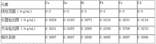 表3 ICP—AES测定泥土重金属的线性、活络度、检出限