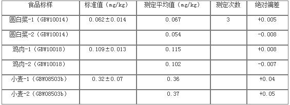 拔取国度规范物资样品,根据上述体例处置后用原子荧光光谱仪(AFS 200)停止测试,测试成果如表5所示: