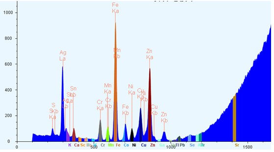 图4 EDX4500H某(mou)大气颗(ke)粒(li)物富(fu)💦集滤膜X荧光阐(chan)发谱(pu)图