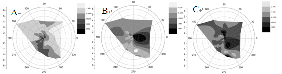 图6 EHM-X200电离层高价属检测仪检测统计数据PM2.5中因素主营养成分阐发取得的各多类物质与气候干系图。图A是多类物质1(文化品牌、生活助燃剂变暗)的溶液渗透压与气候干系图,从图例能说不定分辨多类物质1首选来源于检测控点的东北三省标原因(浅棕色城市);图B是多类物质2(冶金工程文化品牌有机废气治理)的溶液渗透压与气候干系图,从图例能说不定分辨多类物质2来源于检测点客观事物规模较内(浅棕色城市);图C是多类物质3(扬尘问题)的溶液渗透压与气候干系图,从图例能说不定分辨多类物质3首选来源于检测控点的西式风格及北方(浅棕色城市)。图例冷暖色深有由浅到深是洁净的水准由小到大。