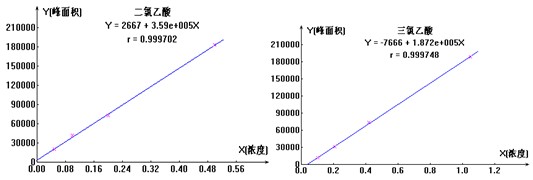 图4. 二氯乙酸、三氯乙酸规范曲线图