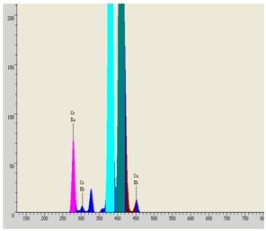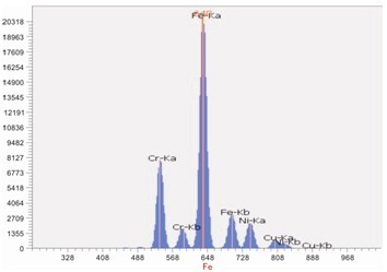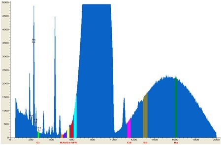 控制EDX 9000C医疗仪器对汽车汽车备件安全玻璃样机打击测量,测量之前1秒,其测量谱图和数据库低于图:
