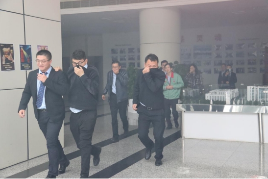 职员们捂着口鼻,依规地从告急出口量向外撤离