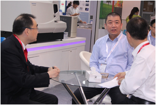 质谱奇迹sf部总司理周立医学博士与的客人正在慢慢接待处的客人